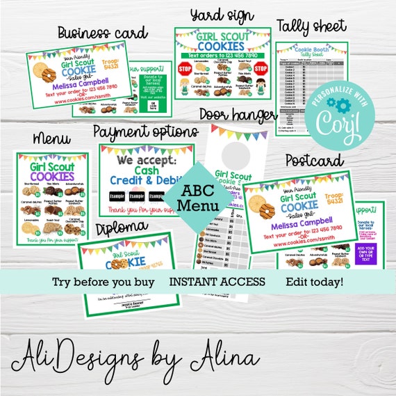 Girl Scout Cookie Sale 2024 ABC Menu MEGA Bundle, EDITABLE