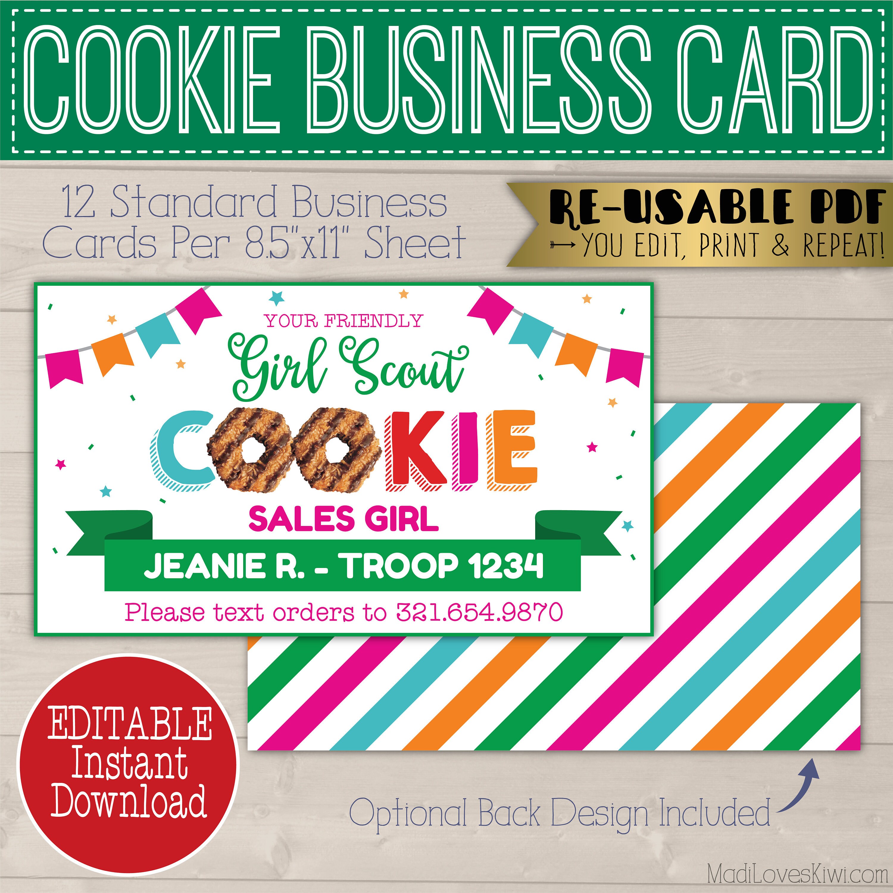 Girl Scout Cookie Sales Business Cards, Printable Cookie Seller