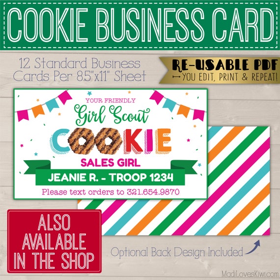 2024 Girl Scout Cookie Business Card Design Girl Scout Cookie Sales Business Card EDITABLE Photo and QR Code : Today marks the annual occasion upon which all of America comes together in harmony: It’s the kickoff of Girl Scout cookie season upsets during NFL’s Wild-Card Weekend GameShark Accidentally . Every year, nearly 700,000 girls participate in the Girl Scout cookie program nationally. The girls will be eligible to earn badges for their work which include Cookie Business badges, Financial .