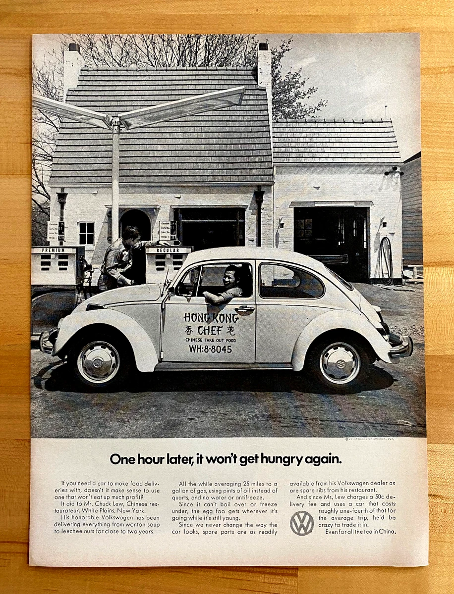 1971 Original Print Ad Volkswagen Beetle “One Hour Later , It Won